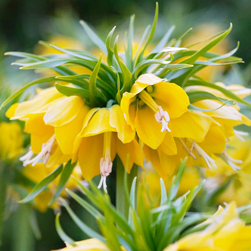 (Fritilaria imperialis) Karaliskā fritilārija jeb ķeizarkronis (Fritillaria imperialis). Viena no skaistākajām fritilārijām. Lapas sakārtotas rozetē, stublāja augšdaļā bez lapām, tā galotnē veidojas lapu pušķis jeb “kronis”, no kura žāklēm attīstās 2–12 nokareni ziedi un atgādina kroni, no tā arī cēlies nosaukums – ķeizarkronis. Ziedi zvanveida, nokareni, oranžsarkani, iekšpusē katras apziedņa