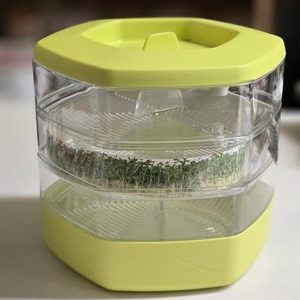 Trauks ir īpaši izstrādāts sēklu, riekstu un pākšaugu diedzēšanai. Trauks sastāv no trim līmeņiem, kas ļauj dīgt 3 dažādu veidu sēklām vienlaicīgi. Ø 17 cm Viegli un ātri – dīgsti Jūsu mājās Lietošanas pamācība/ instrukcija: 1. Diedzēšanas trauku novieto uz līdzenas virsmas. 2. Sarkanos “ventiļus” rūpīgi uzliek uz drenāžas caurulēm. 3.