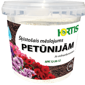 Ūdenī pilnīgi šķīstošs kompleksais minerālmēslojums, kas nodrošina pilnvērtīgu barības vielu kompleksu augiem viegli uzņemamā formā. HORTIS šķīstošais mēslojums petūnijām 100% sastāv no augstvērtīgiem barības vielu elementiem, tas nesatur hloru un ir pilnīgi drošs augiem. Tas veicina augu optimālu augšanu un attīstību, sekmē ziedu veidošanos un bagātīgu augu ziedēšanu. Mēslojums nodrošina