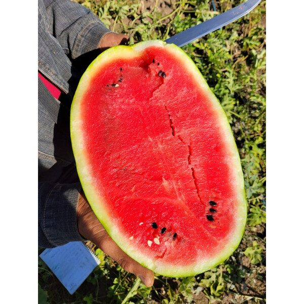 Vidēji agra, ļoti ražīga šķirne. Augļi lieli, ovālas formas, sver 8-12 kg. Mīkstums salds, sulīgs un aromātisks. Vislabāk aug zem seguma- siltumnīcās, lecektīs. Nepieciešama mēslošana. Arbūziem patīk saulainas, siltas un no vējiem aizsargātas vietas, gaisu un mitrumu caurlaidīgas augsnes. Mitrumprasīgi. Audzēšanai siltumnīcā sēklas sēj iekštelpās: IV, 22-24 C temperatūrā. Stādus