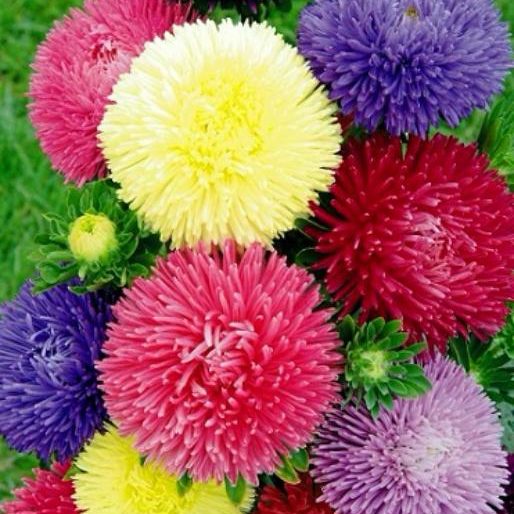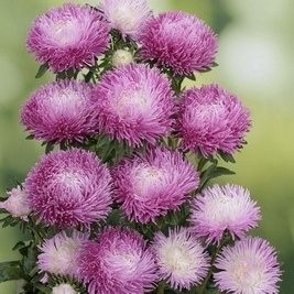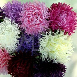 (Callistephus chinensis) Labi sazarots augums, auga augstums 50-60 cm. zieds 10-12 cm liels. Dēstiem sēj siltumnīcā martā, aprīlī vai aprīlī, maijā dobē. Dēstus izstāda maijā, jūnijā. Zied, atkarībā no augšanas apstākļiem, no jūlija līdz septembrim. Lieliskas grieztiem ziediem. Sēklu daudzums paciņā: 35 sēklas Ražotājs: “ Satimex “. (Vācija). Pus -professionālas