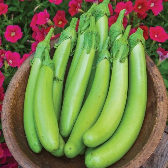 Green Knight ir neparasta un dekoratīva hibrīdu baklažānu šķirne, kas izceļas ar spoži zaļiem augļiem, un maigu, saldenu garšu bez rūgtuma. Ļoti labi piemērota gan dārza dobēm, gan audzēšanai podos vai siltumnīcās. Garša maiga, saldena un bez rūgtuma. Kompakts, vidējas augstuma krūms—aptuveni 60–75 cm augsts un ~45–60 cm plats; labi piemērots