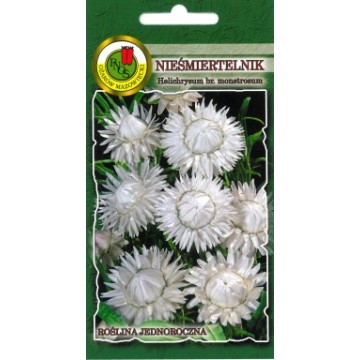 Viengadīgs, 50-100 cm augsts augs ar baltas krāsas ziediem. Ziedi pildīti, 6-8 cm diametrā. Audzē sauso ziedu ieguvei. Ziedus griež ziedēšanas sākumstadijā, izkaltē. Sēklu daudzums paciņā: 1,5 g Preču zīme Pnos. Polija.